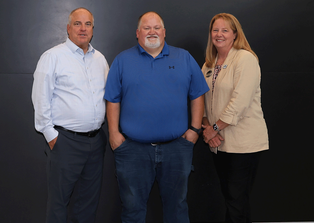 (From left) Russ DeLozier, president of The Carpet and Rug Institute; Andy Phillips, recipient of The Governor Nathan Deal Technical Education Scholarship at GNTC; and Dr. Heidi Popham, president of GNTC, pose for a picture at GNTC’s Whitfield Murray Campus in Dalton. Not pictured is scholarship recipient Jamasin Cook.